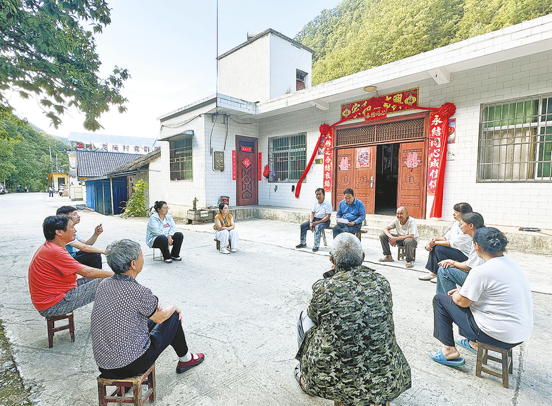 8月11日,丹凤县竹林关镇八龙庙村召开第十一次村民议事座谈会,村干部和群众代表们围坐一起,商讨关于子女不尽义务赡养老人难题,大家集思广益,畅所欲言,纷纷提出“妙点子”。 (本报通讯员 张莉婷 摄)