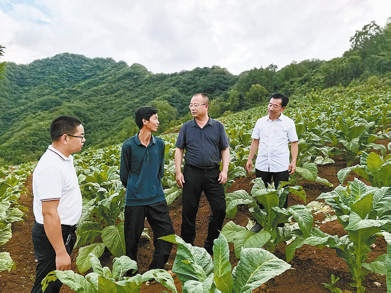 王强(左一)走访烤烟种植户,了解群众困难和诉求。2021年7月,王强接受组织安排,担任镇安县政协机关驻双喜村第一书记。初次来到庙沟镇双喜村时,迎接他的是村民的疑虑:“城里来的年轻娃,没下过地,能行?”“文文弱弱的,吃得了这苦?”4年过去,这个曾经的“问题村”“落后村”发生了翻天覆地的变化,村民口中也满是肯定:“王书记是实心实意干事的!”“这娃看着文气,担子挑得稳当!”面对赞誉,王强深知这是鞭策,更是沉甸甸的责任。