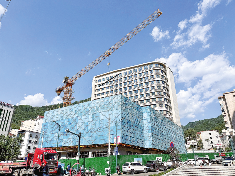 8月13日,柞水县人民医院门诊医技楼综合项目正在建设中。据了解,该项目集门诊、检验、体检、康复等多功能于一体,建成后可更高效满足群众多样化就医需求。 (本报记者 谢 非 摄)