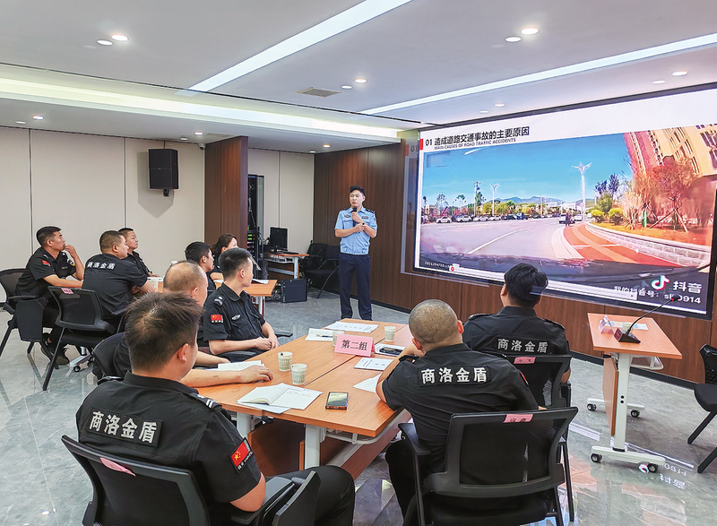 8月21日,商州交警大队组织民警走进商洛市金盾押运有限责任公司开展交通安全知识宣传讲座。 (本报通讯员 周世誉 摄)