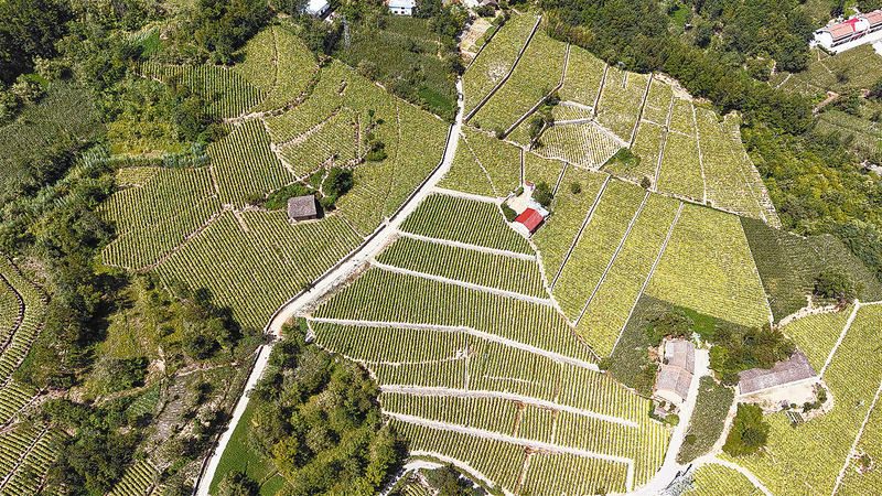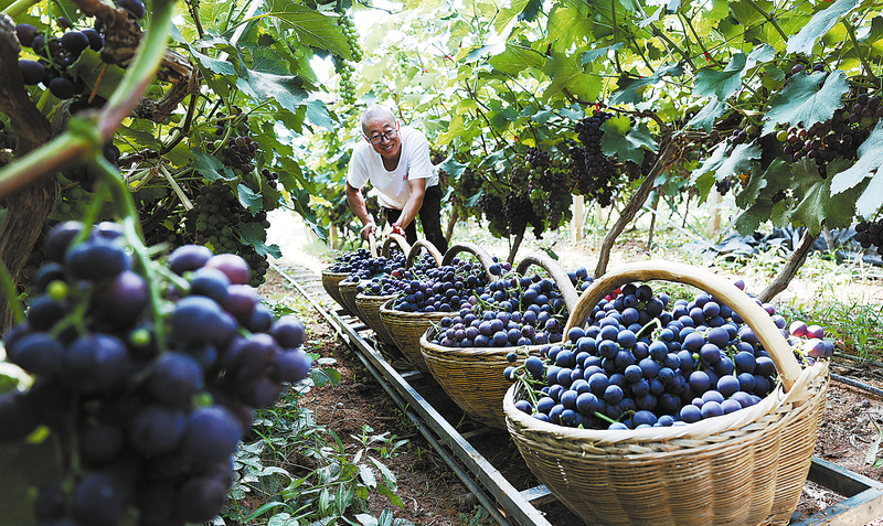8月9日,在洛南县永丰镇李村,葡萄种植大户李林山在葡萄园内安装铁轨运送葡萄,减轻劳动负担。 (本报通讯员 阮世喜 摄)