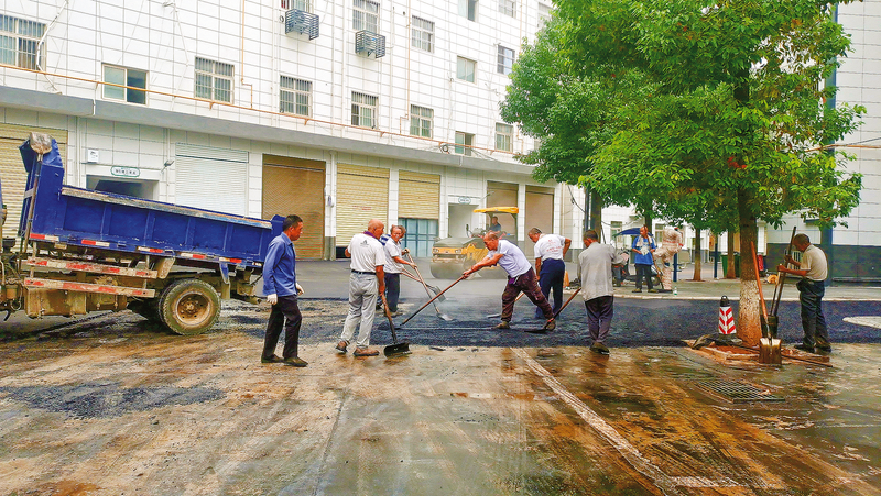 今年以来,丹凤县把老旧小区改造作为保障和改善民生的好事实事,加大投入,加快进度,让市民真正得到实惠。图为8月25日,丹凤县红枫小区改造项目现场,工人们正在实施场地“白改黑”,小区面貌焕发新颜。 (本报通讯员 樊利仁 摄)