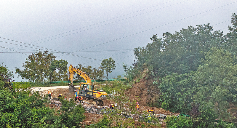 8月22日,镇安县永乐街道安山村通村路拓宽修复正在加紧施工中。安山村是县城东边有名的观光农业示范区,限于交通问题,一直制约着该村的发展,这次道路拓宽和水毁修复将极大改变这一现状。 (本报通讯员 杨建东 摄)