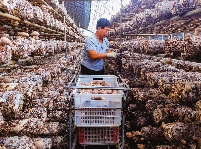 草店村素有“米粮川”之称。2020年,村里依托地理优势,建成五色田园现代菌业产业园。五年来,香菇成了村民增收的“致富伞”。