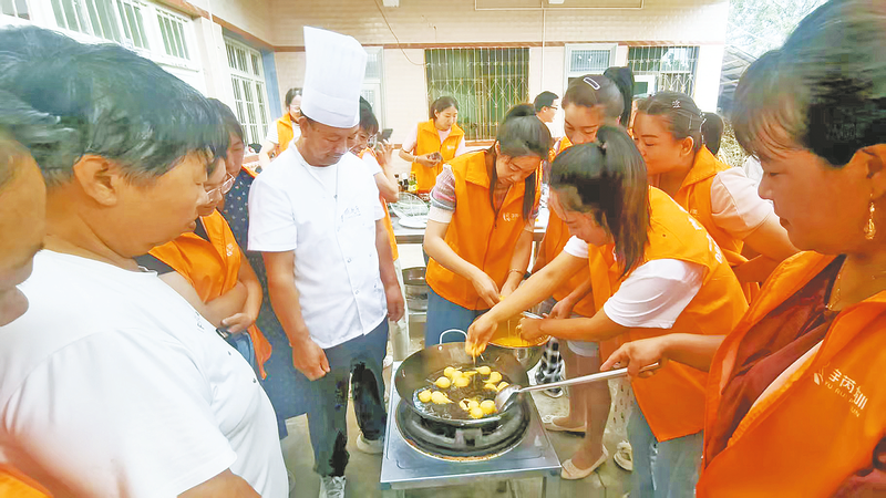 洛南县围绕农村劳动力、脱贫群众等重点群体就业目标,积极开展职业技能提升培训,帮助引导更多群众掌握一技之长实现就业创业。图为8月26日,洛南县人社局联合商洛宇芮职业技能培训学校在景村镇易地搬迁社区对40余名群众开展中式烹饪美食培训。 (本报通讯员 刘卫锋 摄)
