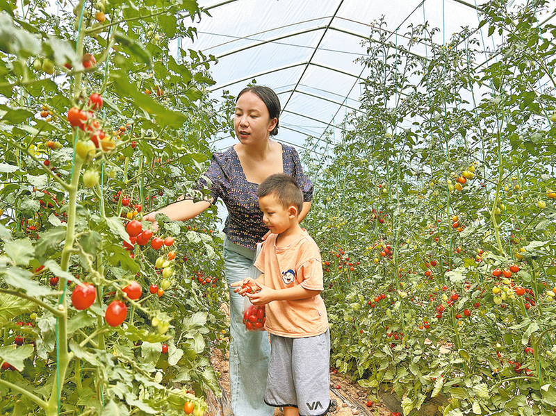 游客在张平的瓜果种植采摘基地采摘圣女果8月15日,清晨的阳光穿透洛南县城关街道陶岭社区的薄雾,洒在一片繁忙的建设工地上。几台起重机正将钢结构架起,工人穿梭在尚未完工的大棚间,忙着铺设灌溉管道。不远处,四个已经建成的日光温室里,嫩绿的幼苗在恒温环境中舒展叶片——这里是陕西洛水情源农业科技有限公司的育苗基地核心区,也是张平重塑洛南蔬菜产业的“试验田”。