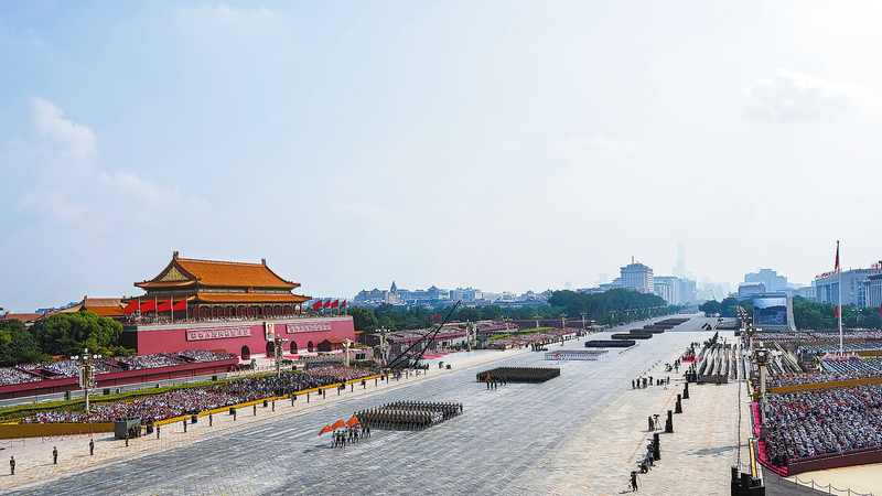 九月三日,纪念中国人民抗日战争暨世界反法西斯战争胜利 八十周年大会在北京隆重举行。这是徒步方队接受检阅。 (新华社记者 孙 非 摄)习近平强调,隆重纪念中国人民抗日战争暨世界反法西斯战争胜利80周年,目的是铭记历史、缅怀先烈、珍爱和平、开创未来。中华民族是不畏强暴、自立自强的伟大民族。中国人民解放军始终是党和人民完全可以信赖的英雄部队。要坚定不移走中国特色社会主义道路,传承和弘扬伟大抗战精神,踔厉奋发、勇毅前行。中华民族伟大复兴势不可挡!人类和平与发展的崇高事业必将胜利!
