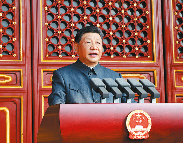 9月3日,纪念中国人民抗日战争暨世界反法西斯战争胜利80周年大会在北京天安门广场隆重举行。中共中央总书记、国家主席、中央军委主席习近平发表重要讲话。 (新华社记者 谢环驰 摄)