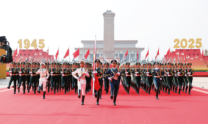 △9月3日,纪念中国人民抗日战争暨世界反法西斯战争胜利80周年大会在北京隆重举行。这是空降突击方队接受检阅。 (新华社记者 刘 潺 摄)
