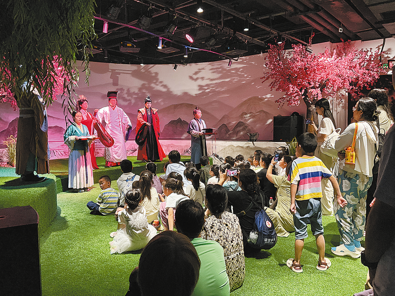 柞水孝义文化体验园里,游客观看情景剧《周礼人生》,感受孝义文化。