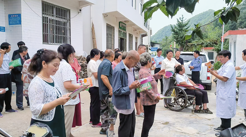 9月2日,丹凤县花瓶子镇卫生院组织医护人员通过发放宣传彩页、面对面讲解等方式,向辖区群众全方位普及健康知识,帮助群众了解秋季传染病预防知识,进一步增强群众健康意识和自我保健能力。 (本报通讯员 冯皓玥 摄)