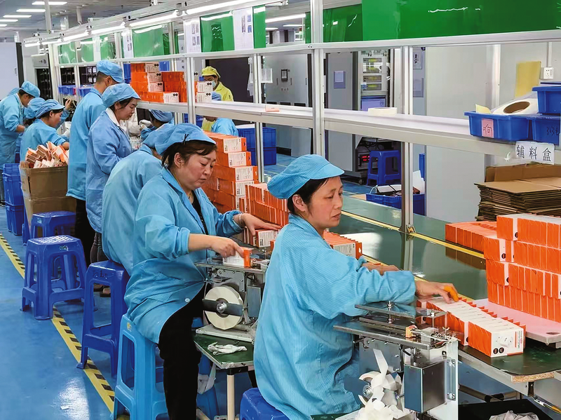 9月5日,在瑞通隆电子科技公司生产车间里,工人正在组装充电器。该项目建设了15条小家电及智能家居生产线,带动300多名群众就近就业,推动电子信息集群化发展。 (本报记者 党率航 摄)