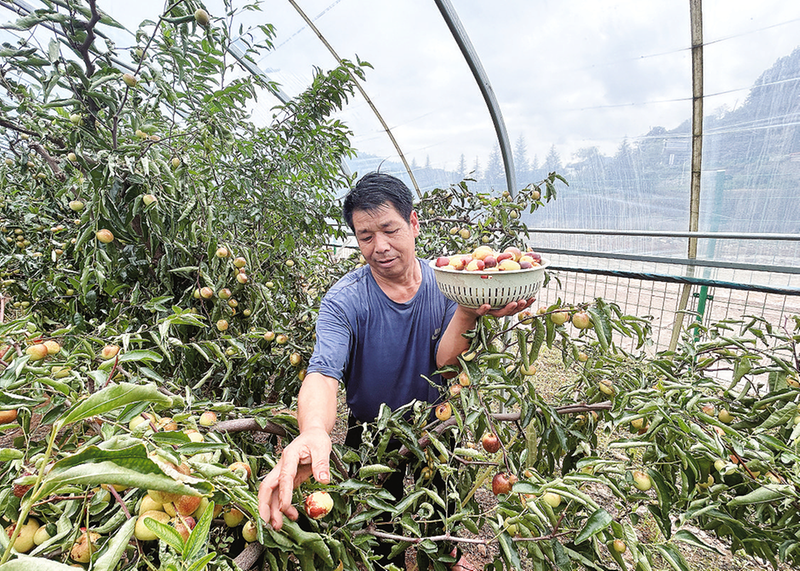 △9月15日,丹凤县龙驹寨街道代庄村的冬枣硕果满枝,群众忙着采摘部分成熟冬枣。目前,该村发展冬枣21亩,预计可为村集体经济增收10多万元。眼下正值瓜果飘香的时节,9月12日,走进丹凤县商镇王塬村的葡萄大棚,一串串饱满的葡萄挂满枝头,来自县城的王女士正带着孩子体验采摘:“让孩子走进田间,既能亲近自然,又能感受劳动的快乐,这样的体验特别有意义。”