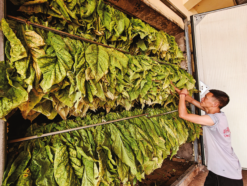 9月16日,洛南县景村镇八一村村民何宝山准备烘烤今年的第9炉烟叶。据了解,八一村今年种植烤烟1000多亩,40多户村民依靠烤烟产业增收致富。 (本报记者 杨 鑫 摄)