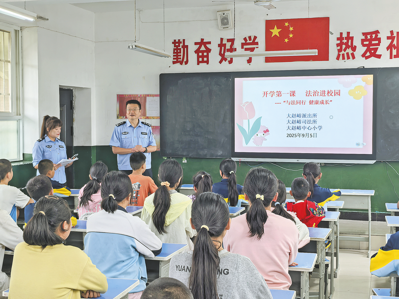 近日,公安商州分局大赵峪派出所民警走进辖区大赵峪中心小学,结合小学生的年龄特点和认知水平,通过以案释法、情景模拟等形式,就预防校园欺凌进行专题讲解。(本报通讯员周亚军 摄)