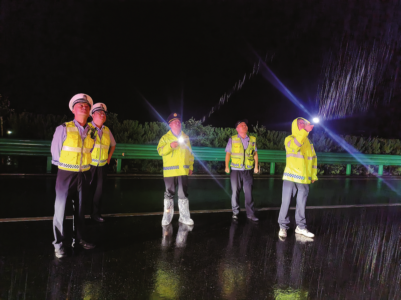 受持续强降雨影响,9月18日晚,省路政执法总队第十支队六大队迅速启动二级防御响应,联合多部门实施“分段巡查”工作机制,对辖区内高边坡、易积水点、涉河桥梁及沿线排水设施展开拉网式排查,确保第一时间发现并处置路面积水、边坡滑塌等风险隐患。 (本报通讯员 宁 智 摄)