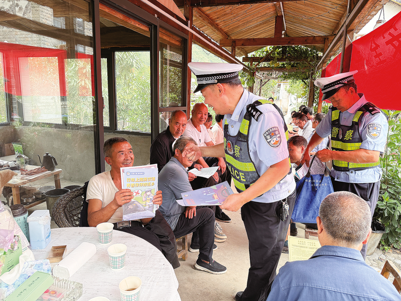9月16日,镇安县公安局交通管理大队携手县政协社法委,在镇安乡村人口集中地普及交通安全知识。活动发放资料140份,吸引70名村民参与。 (本报通讯员 宁远鹏 摄)