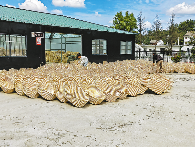 九月二十四日,工人在洛南县就业帮扶基地—— 巧手工艺品有限公司晾晒即将出口销售的婴儿摇篮。近年来,洛南县大力实施就业优先战略,持续打造就业劳务品牌,积极建设培育就业帮扶基地,认定就业帮扶基地和社区工厂七十二个,累计吸纳安置群众就业二千七百多人。(本报通讯员 刘卫锋 摄)