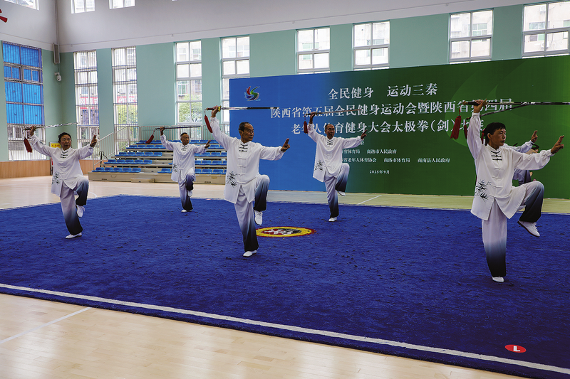 9月27日至28日,“全民健身 运动三秦”陕西省第五届全民健身运动会暨陕西省第四届老年人体育健身大会太极拳(剑)比赛在商南举行,来自全省的11支代表队300名太极爱好者交流技艺。(本报通讯员 李 潇 摄)