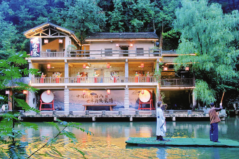 吊脚楼内,省级非遗柞水渔鼓的精彩表演迎来阵阵掌声。