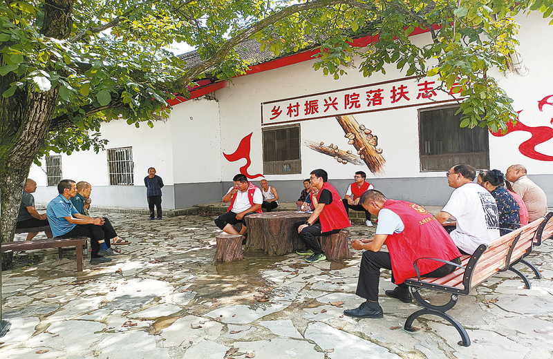 金米村以新时代文明实践活动凝聚乡村振兴合力。图为9月5日,金米村组织召开“院落会”,了解群众秋收开展情况。秋日清晨,柞水县小岭镇金米村在细雨蒙蒙中苏醒。整洁的村道旁桂花飘香,连片的木耳大棚在雨滴轻叩下,仿佛奏响乡村振兴的动人乐章。这个充满活力的村庄,随处可见“志愿红”活跃的身影——或是俯身清理路面的党员志愿者,或是穿梭于乡间小道的服务队队员。他们用实实在在的行动,书写着文明实践助力文化振兴的生动故事。