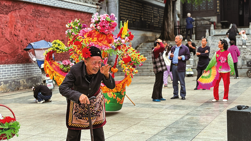 ◁山阳漫川古镇民俗展演引得阵阵喝彩。国庆中秋喜相逢,我市处处洋溢着节日的喜庆。围绕“文旅惠民、欢乐双节”主题,全市整合资源,精心策划推出文艺演出、民俗体验、非遗展示、旅游推广等各类文旅活动99项共577场,并设计3条秋季精品线路及多项惠民政策,为广大游客提供了丰富多元的假日选择。尽管部分景区受连续降雨影响临时关闭或调整活动,全市旅游市场依然人气不减、秩序井然,展现出较强的消费潜力与发展活力。