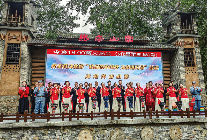 柞水终南山寨景区开展丰富多彩的文艺演出活动,增强游客互动体验。