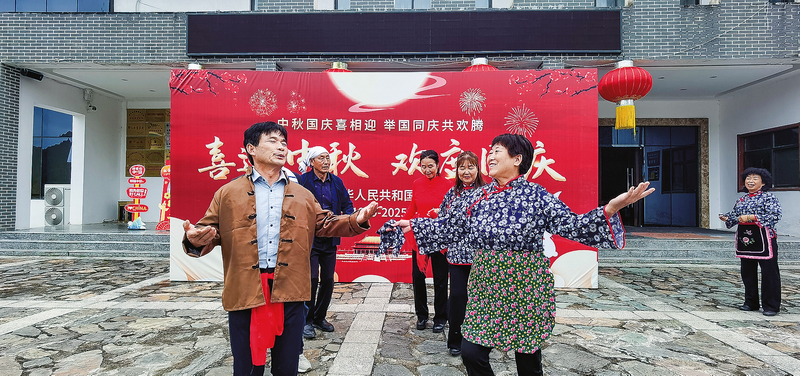 国庆中秋假日期间,商州区北宽坪红色教育基地通过宣讲革命老区故事、举办移风易俗节目展演等活动,让游客在人间烟火与文化魅力中,收获“国庆中秋喜相逢”的游玩体验。(本报通讯员杨开让摄)
