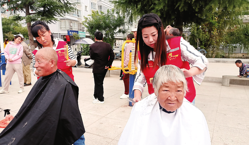 近日,志愿者在景村街社区广场开展孝德实践活动,为辖区老人义务理发。“多亏了咱村上的文明实践站,安排志愿者定期来给我理发、陪我聊天,还组织医生给我们老年人免费体检!”近日,在洛南县景村镇兑山村,贾喜绒奶奶逢人就夸村里的文明实践活动。贾喜绒年事已高,子女都在外地打工,生活上难免有不少难处。如今,文明实践志愿活动让她感受到了满满的关怀与温暖。