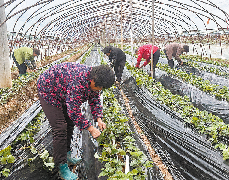 10月21日,位于商州区夜村镇于塬村的商洛市绿缘生态农业休闲园内,工人正在为草莓苗覆膜。据了解,该园内种植草莓30多亩,有红玉、隋珠、红颜、粉玉、黑珍珠、天使八号6个品种,预计11月中旬陆续上市。 (本报记者 王孝竹 摄)