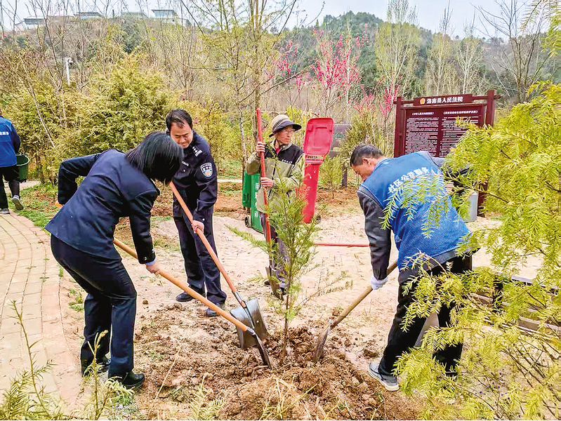 洛南县司法局充分挖掘本地教育资源、拓展教育载体。图为近日,组织社区矫正对象在秦岭红豆杉保护基地植树。本报通讯员 田 雷