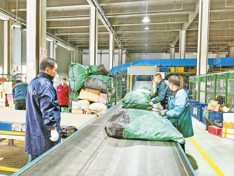 洛南县寄递物流共配中心既是洛南县“农产品上行”快递物流中心,也是洛南县“快递进村”县级枢纽,目前,其已整合3家民营快递企业与中国邮政快递开展县域快递共分共配,日均分拣量为3.2万件,实现了县域内快递自动化分拣、集中管理和统一配送,提升了进口邮件分拣效率,降低了分拣、运输、投递成本,为全县三级快递物流体系建设奠定了基础,进一步推动了快递进村。图为10月24日,洛南县寄递物流共配中心工作人员正在分拣快递。 (本报通讯员 毕波波 摄)