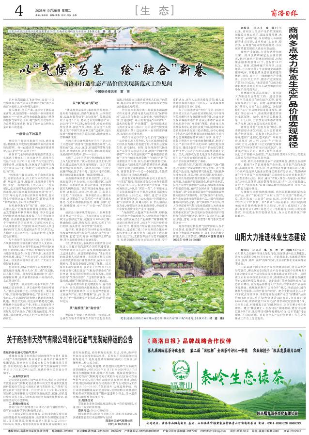 本报讯 (通讯员 成 源)今年以来,商州区以生态产品价值实现机制建设为核心抓手,通过统筹部署、典型培育、品牌打造、绿色赋能及金融创新等多元举措,成功构建“生态美、经济强、百姓富”的良性发展格局,为区域高质量发展注入强劲生态动能。