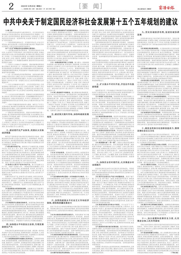 中共中央关于制定国民经济和社会发展第十五个五年规划的建议