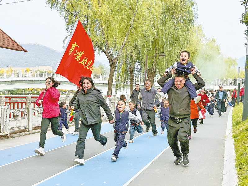 10月31日,商州区第五幼儿园举行亲子快乐跑暨体操比赛。孩子们在家长的陪伴和鼓励下,迈着坚定的步伐向前奔跑,在运动中感受快乐,展现勇往直前、超越自我的劲头。(本报记者 党率航 摄)