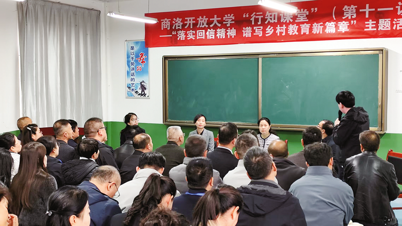 10月24日,商洛开放大学“行知课堂”(第十一讲)——“落实回信精神、谱写乡村教育新篇章”主题活动走进商州区三岔河镇火神庙九年制学校。陕西开放大学全省办学体系2025年度师德师风专题教育暨实践研修的全体学员及三岔河镇部分特岗教师等120多人齐聚一堂,共同重温9月8日习近平总书记给全国特岗教师代表的回信精神,深切体悟优秀教师的高尚道德情操。