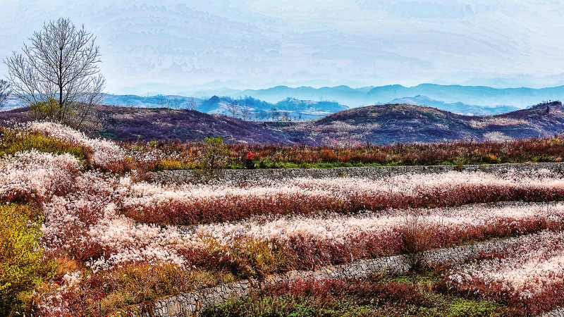 △在商州区大荆镇,山坡上的芦苇随风摇曳,静谧的山坡因此多了几分浪漫和生机。商洛的秋天,是秦岭深处酝酿的一场惊喜。当夏末的连阴雨被秋风卷走,这片土地便褪去青绿,换上五彩霓裳——从商州的柿子到洛南的云海,从丹凤的山林到山阳的红叶,每一处景致都带着独属于秦岭的厚重与灵动,将秋的意蕴诠释得淋漓尽致。