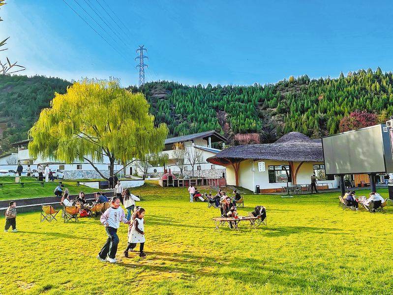 “十四五”以来,我市深入践行“绿水青山就是金山银山”理念,推动旅游、康养、体育三大产业深度融合发展,不仅实现城市面貌的蝶变与产业生态的构建,更有效促进了绿色消费蓬勃发展,走出了一条生态价值转化的高质量发展之路。图为11月9日,位于商州区刘湾街道张峪沟村的东坡院子康养度假农庄吸引众多游客前来休闲、游玩。 (本报记者 杨 鑫 摄)