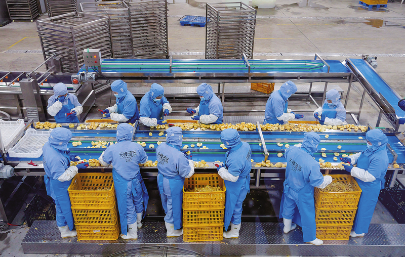 11月11日,在陕西天榛食品科技有限公司车间里,工人们正忙着加工苹果干。该公司位于洛南县永丰镇,主要生产坚果类制品和各类特色果干制品,年销售额可达4000万元,带动周边群众100多人就近就业,人均年收入3万多元。 (本报记者 李 敏 摄)