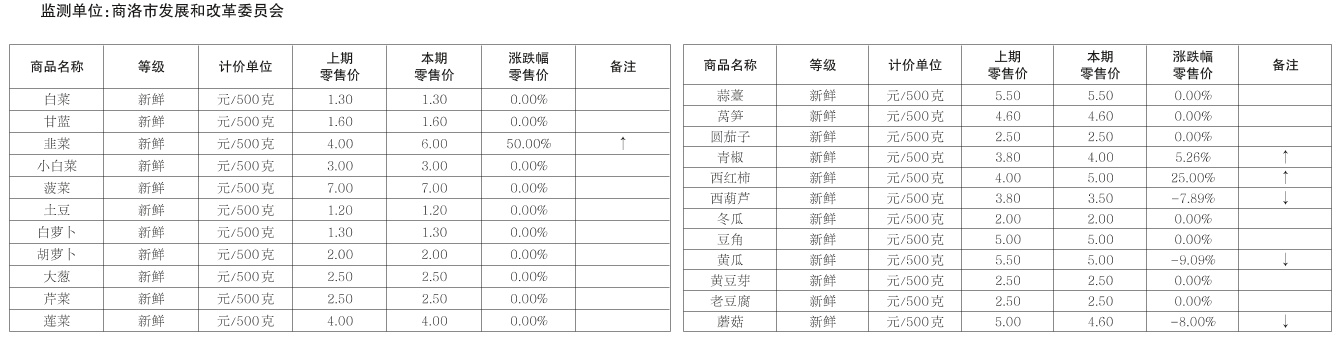 商洛市蔬菜农批市场价格监测情况(2025-11-11)