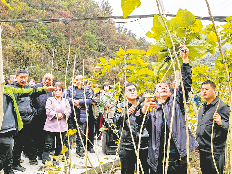11月12日,镇安县达仁镇举行蚕桑产业秋冬季桑园科管及防冻技术培训。培训中,农技专家围绕秋冬季桑园施肥、修剪、病虫害防治及防寒防冻关键技术展开详细讲解,结合实际案例演示操作要点,现场解答蚕农疑问。此次培训精准对接蚕农需求,为来年蚕桑产业提质增效、蚕农增收筑牢根基。 (本报记者 孙远飞 摄)