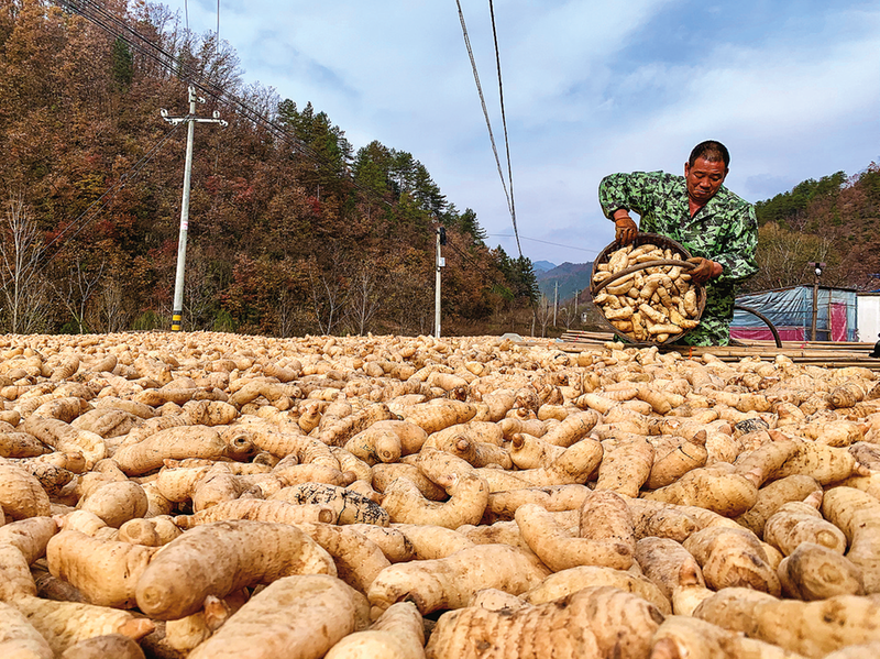 近期,丹凤县峦庄镇天麻进入收获期,群众在晾晒天麻。本报通讯员 时方晴