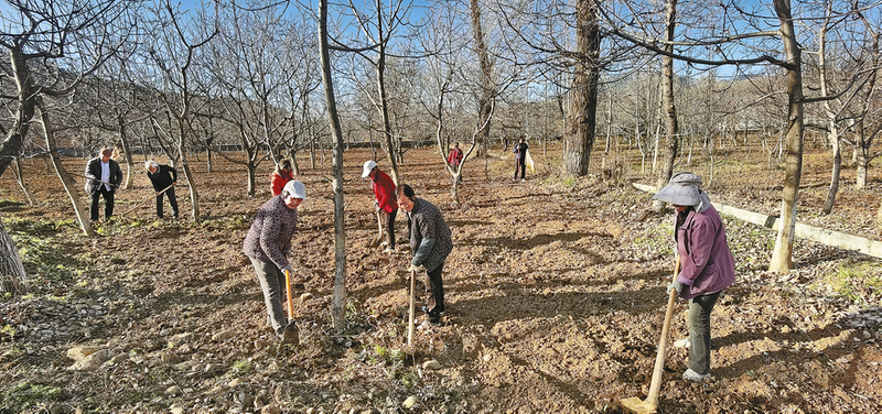 连日来,洛南县保安镇群众积极行动,对核桃产业园实施涂白、施肥、修枝、扩盘等冬季科管,为来年核桃产业增产增收夯实基础。 (本报通讯员 杨开让 摄)