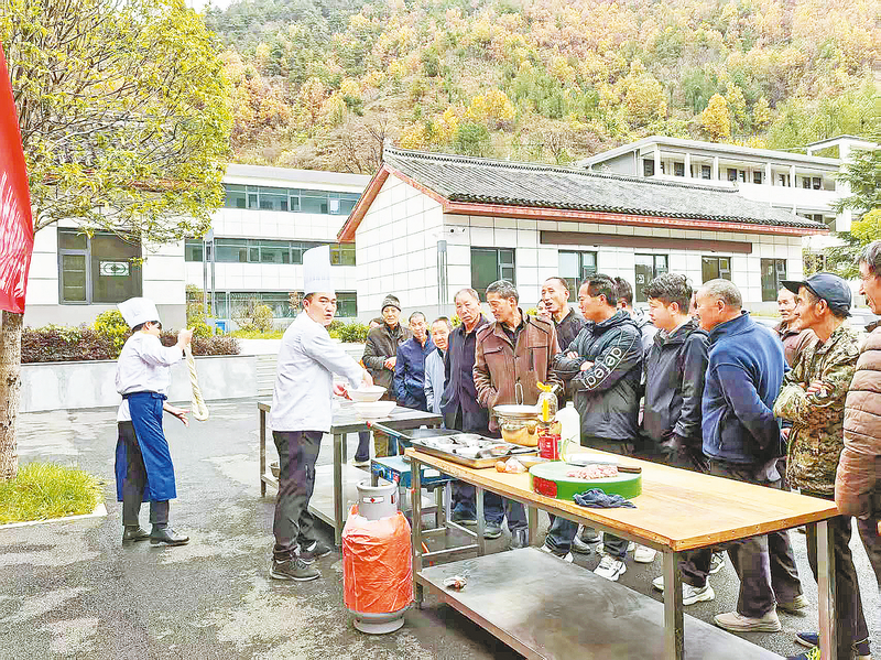 本报讯 (通讯员 郭 宏)近日,在丹凤县蔡川镇留仙坪红色教育基地广场,30余名村民围成一圈,手机镜头齐刷刷对准广场中央——一位头戴厨师帽、手持炒勺的专业厨师正颠锅翻炒,酸辣土豆丝的香气伴着“滋啦”声响弥漫开来。这场“把课堂搬进田间地头”的烹饪技能培训,正是蔡川镇今年打造“精准化、实用化”就业技能培训的生动缩影。