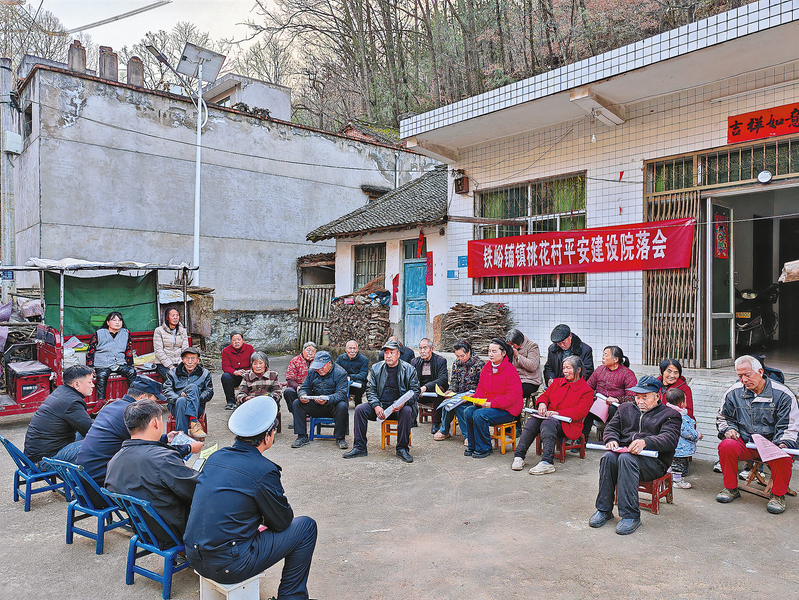 近日,丹凤县铁峪铺镇各村(社区)组织召开院落会,通过与群众面对面拉家常的方式,了解群众需求,解决矛盾纠纷,并向群众宣讲森林防火、冬季用火用电等安全知识。图为十一月二十七日,该镇桃花村召开平安建设院落会现场。 (本报通讯员 田 东 摄)