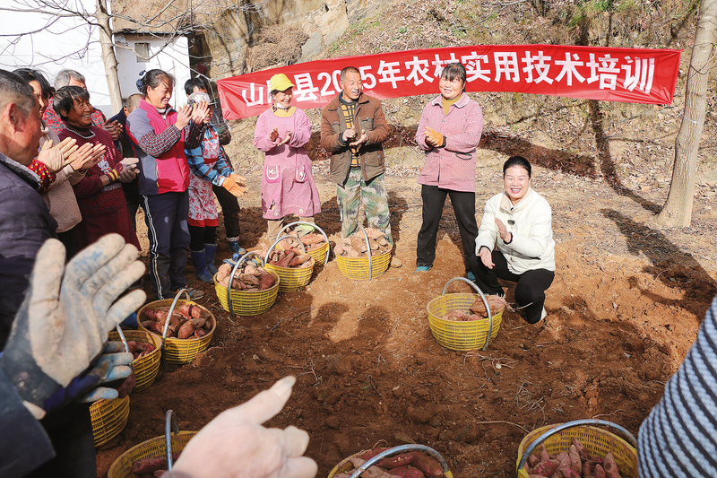 11月28日,在山阳县高坝店镇鱼塘村种植大户孙俊富承包的红薯地里,县农科教中心工作人员正在开展技术培训。据了解,在工作人员的跟踪指导下,孙俊富种植的318亩红薯今年迎来了大丰收,总产量可达到75万公斤,并且带动附近村民在此务工,实现经济效益和社会效益双赢。