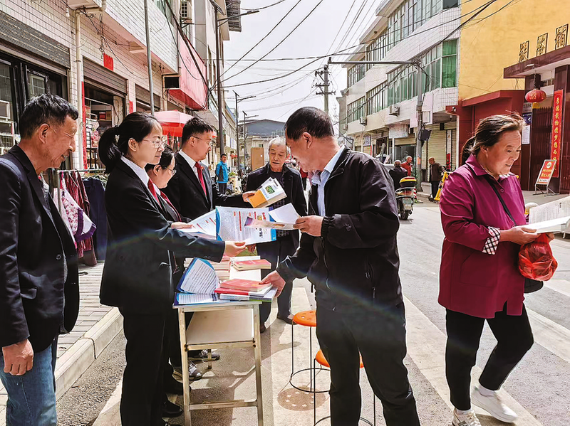 11月28日,丹凤县人民法院铁峪铺法庭干警在铁峪铺镇中心村开展平安创建“八率一度”宣传活动,向群众讲解平安创建应知应会知识。本报通讯员 李從熇