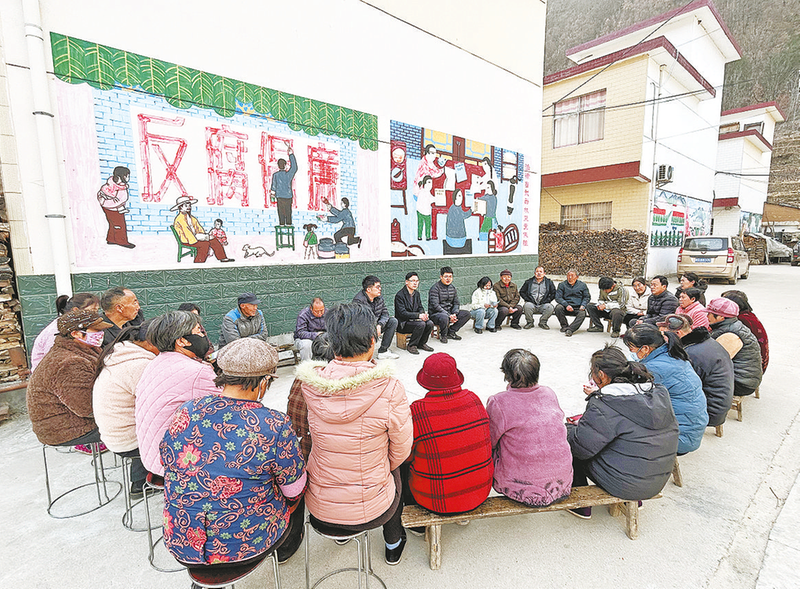 近日,山阳县城关街道翠屏社区“四支队伍”组织召开群众院落会,将党的二十届四中全会精神宣讲“会场”搬到群众家门口,用通俗易懂的“乡音土话”解读、宣传全会精神,全力打通政策宣传“最后一米”,推动党的创新理论“飞入寻常百姓家”。 (本报通讯员 蔡 铭 摄)