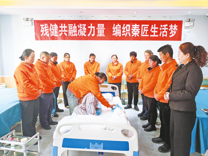 位于洛南县西城区的陕西省尼喜乐家政服务有限公司,以消杀保洁、医院护工、居家养老照料、母婴护理、收纳整理等家政服务项目为主,为客户提供高标准的家政服务,已带动近100人就地就近就业,人均月收入4000元。图为12月17日,专业培训讲师进行医院护工专业护理知识培训。 (本报通讯员 毕波波 摄)
