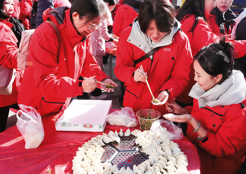 12月14日,西安市助老爱幼公益慈善基金会携手中意人寿保险有限公司陕西省分公司及商州周末微公益协会等130名志愿者,走进大荆镇油房村联合开展“中意传温情 山区暖夕阳”大型公益活动。活动现场,志愿者为老人做烩菜、包饺子,并送去米面、棉被、羽绒服、感冒药等爱心物品,共计2.8万多元。 (本报记者 方 方 摄)